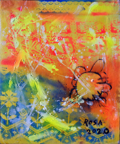 Attraverso la serie di dipinti sui virus di più recente produzione (nel lungo e buio 2020) propongo immagini pittoriche che evocano figure ultra-microscopiche con le quali tendo a esorcizzare le forze pandemiche che troppo a lungo ci sono sembrate schiaccianti. I dipinti saturi di colori scuotenti, quasi violenti, gridano all’umanità le numerose vittime, specialmente gli anziani già compromessi che hanno desolatamente incontrato la fine nella solitudine più triste. Quel numero ingente di persone che, miracolosamente sopravvissuto a eventi catastrofici del passato come guerre e terremoti, è ora avvolto nel silenzio eterno dopo il dolore vissuto e quello lasciato ai propri cari.